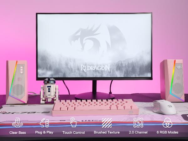 Redragon GS520 RGB Desktop Speakers, 2.0 Channel PC Computer Stereo Speaker with 6 Colorful LED Modes, Enhanced Sound and Easy-Access Volume Control, USB Powered w/ 3.5mm Cable